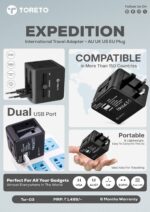 Say goodbye to the hassle of multiple chargers and adapters with the Toreto Universal Travel Adapter! This sleek and compact device is designed to keep you connected no matter where your adventures take you. With its built-in USB cable, you can easily charge your devices in over 150 countries, ensuring you’re always powered up and ready to go. Lightweight and travel-friendly, it’s the perfect companion for globetrotters and business travelers alike. Don’t let incompatible plugs hold you back—grab your Toreto adapter and travel smart!
