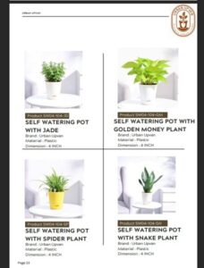 SELF WATERING POT WITH JADE , SELF WATERING POT WITH GOLDEN MONEY PLANT, SELF WATERING POT WITH SPIDER PLANT, SELF WATERING POT WITH SNAKE PLANT.
